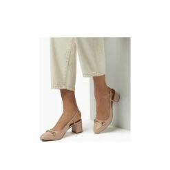 A sophisticated pair of sling-back court shoes with a classic snaffle-detail design. Set on a wearable mid-block heel the ladylike, feminine silhouette is punctuated with gold hardware and an adjustable buckle on the ankle strap ensuring a perfect fit.