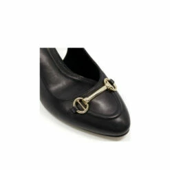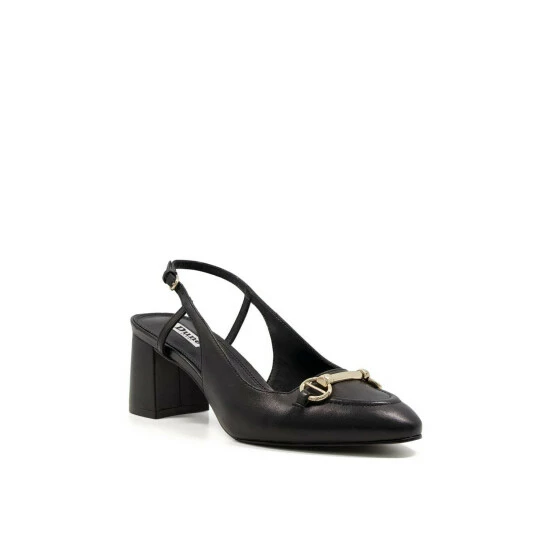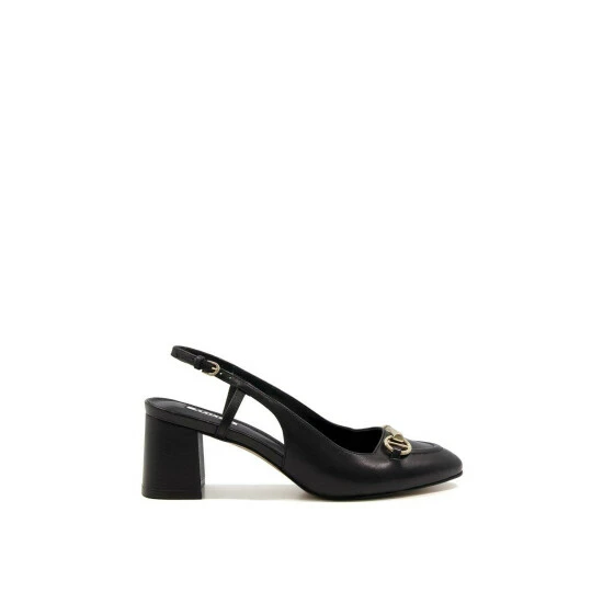 A sophisticated pair of sling-back court shoes with a classic snaffle-detail design. Set on a wearable mid-block heel the ladylike, feminine silhouette is punctuated with gold hardware and an adjustable buckle on the ankle strap ensuring a perfect fit.