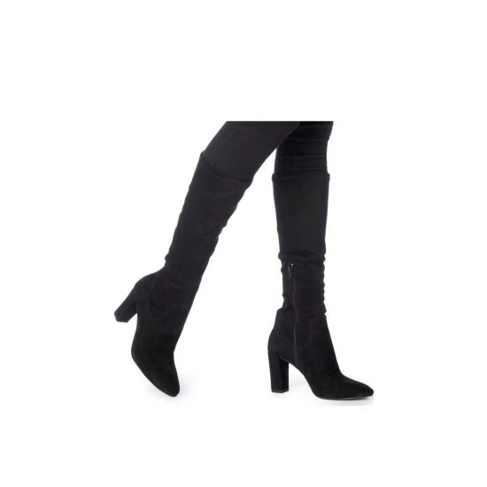 The minimalist woman will be in favour of Siren for years to come. They’re designed with faux-suede and feature an almond toe and functional side zip, all whilst resting on a high block heel that elongates the leg. A versatile option to team with your everyday outfits, these black knee-high boots will slot in seamlessly with your shoe collection.